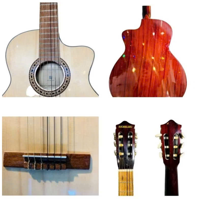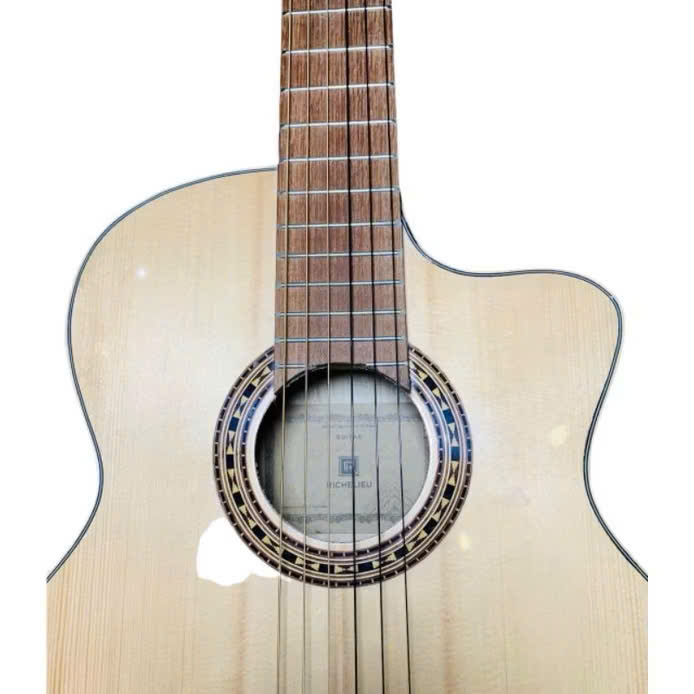 Mô tả sản phẩm: Đàn Guitar Classic Richelieu – Model: RC5 | Size: 40 inch | Màu sơn: Sơn bóng | Dáng đàn: Khuyết | Chất liệu: Ván ép ngoại nhập (có vân) | Ty chỉnh cong cần: Có | Dây đàn: AC107BK